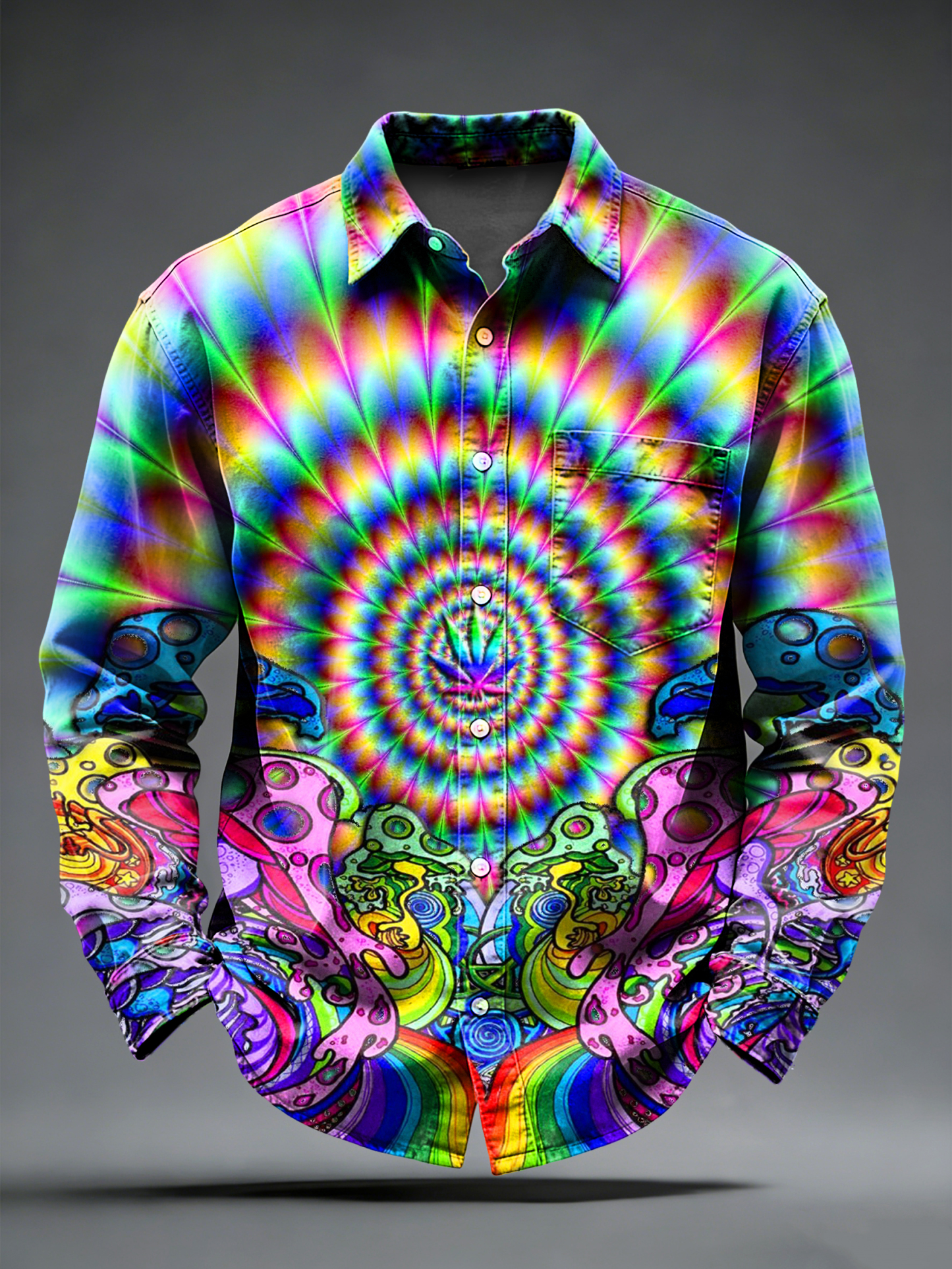 Men's Retro Psychedelic Printed Long Sleeved Pocket Shirt