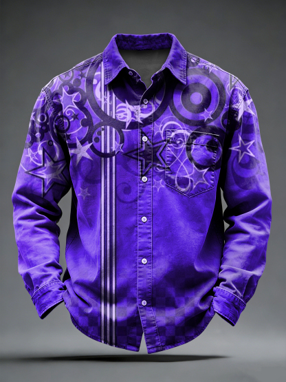 Men's Retro Punk Music Printed Long Sleeved Pocket Shirt