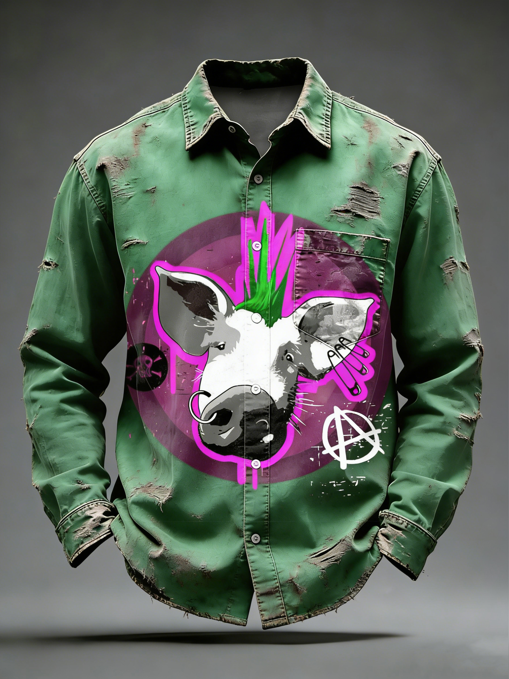 Men's Retro Punk Printed Long Sleeved Pocket Shirt