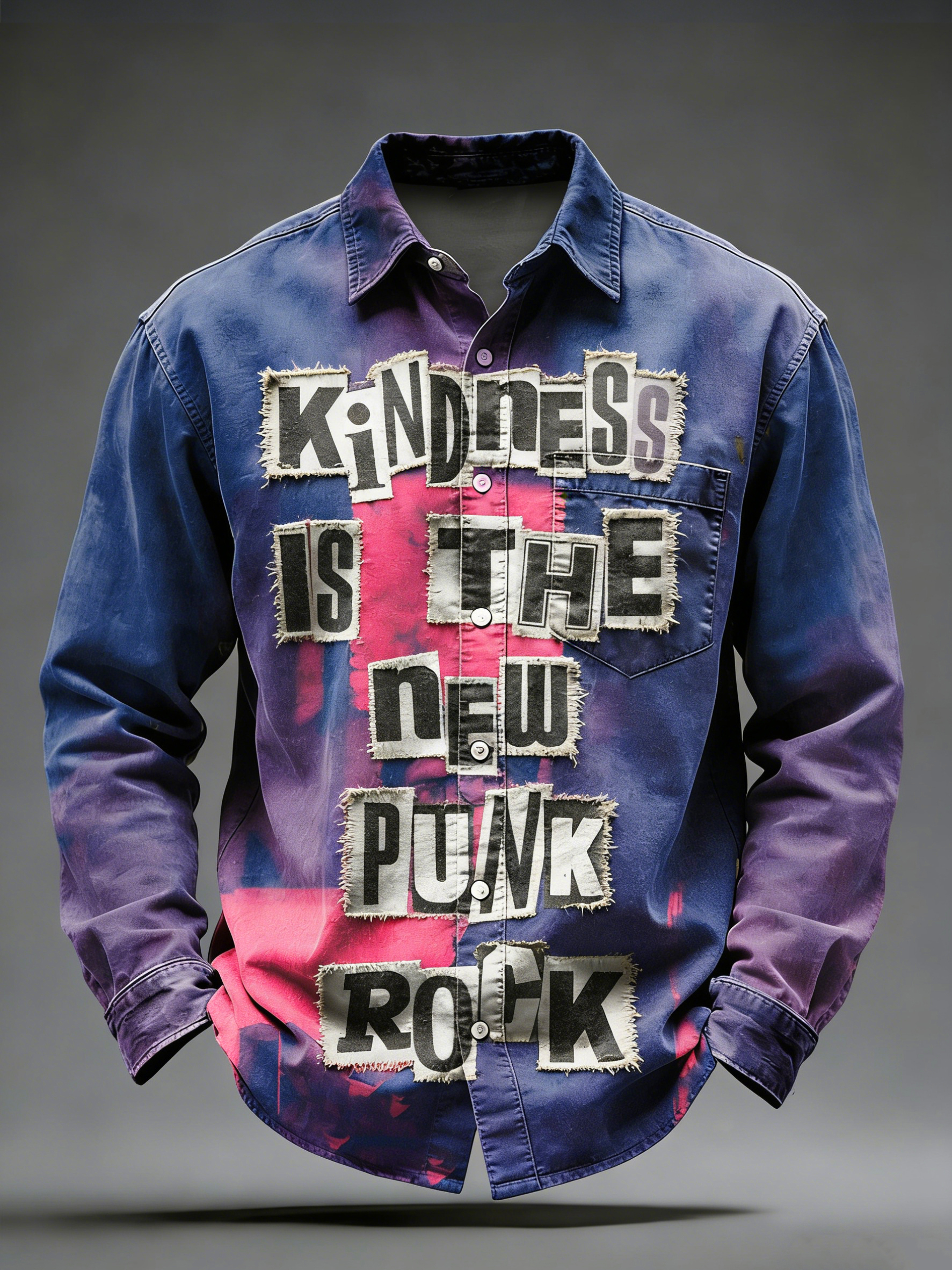 Men's Retro Punk Printed Long Sleeved Pocket Shirt