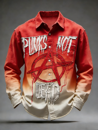 Men's Retro Punk Printed Long Sleeved Pocket Shirt