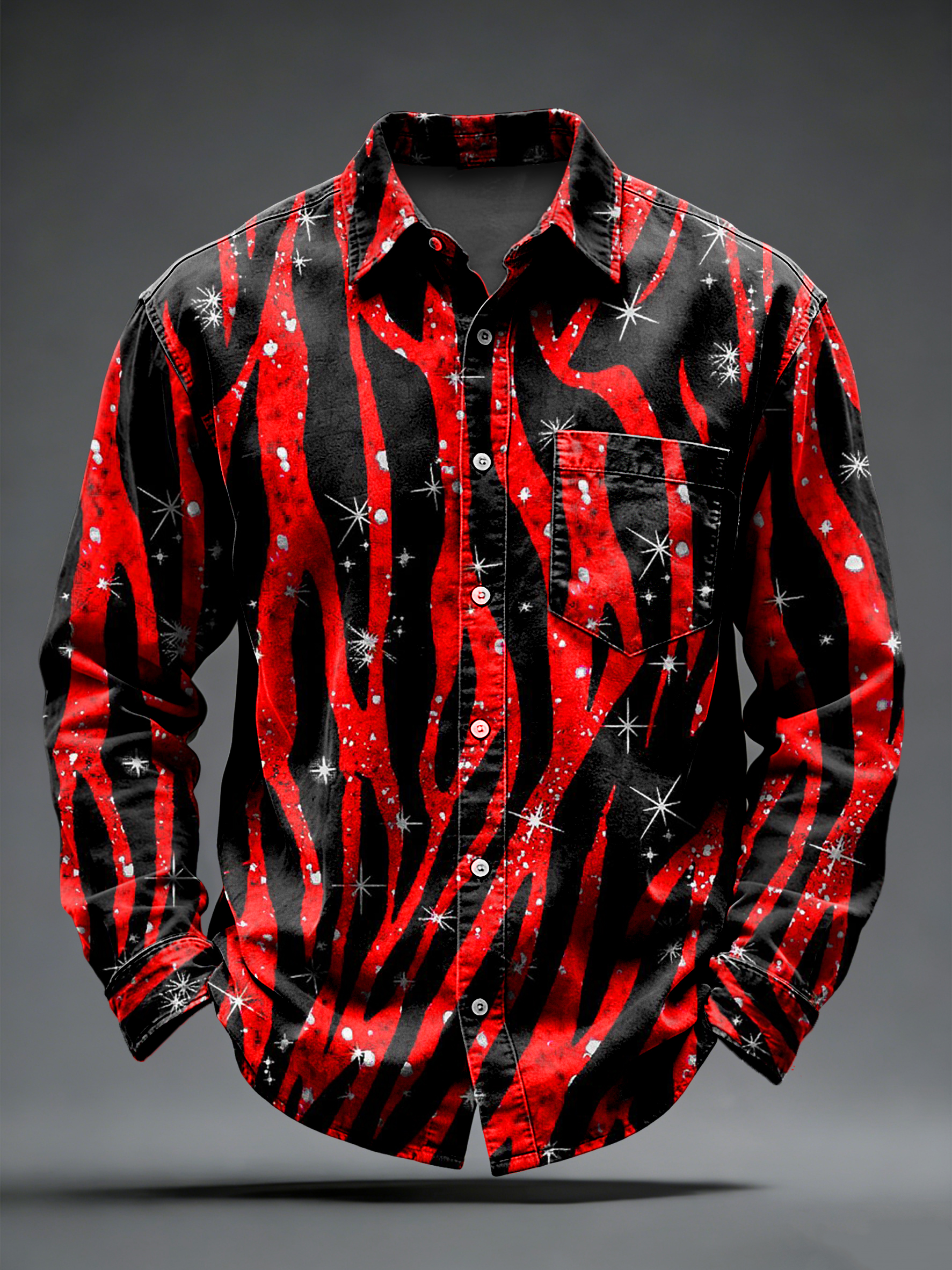 Men's Retro Punk Psychedelic Printed Long Sleeved Pocket Shirt