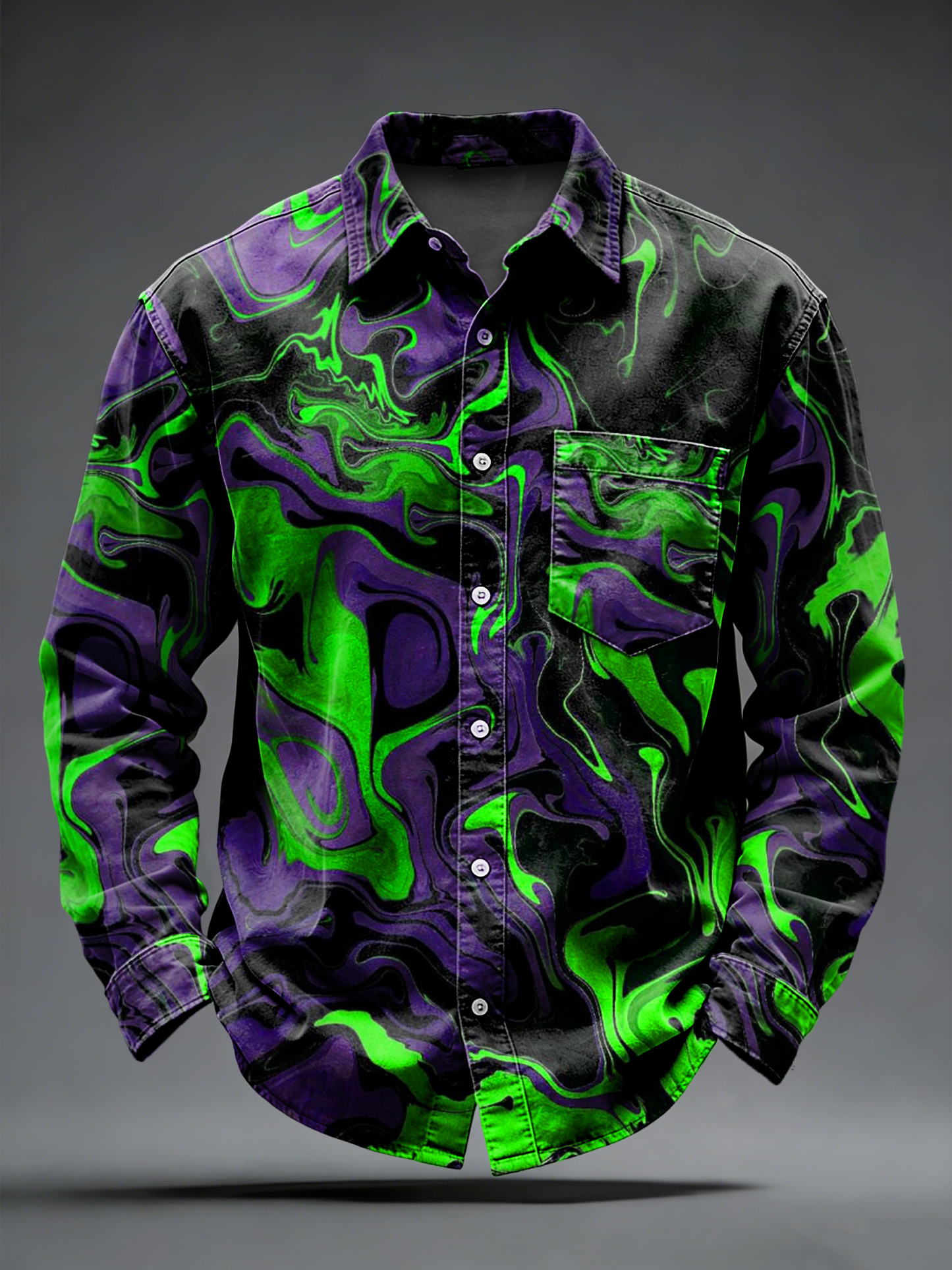 Men's Retro Punk Psychedelic Printed Long Sleeved Pocket Shirt