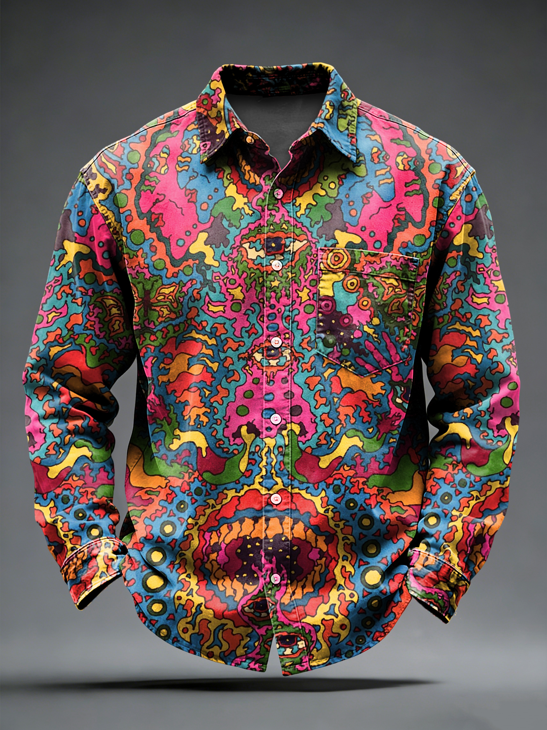 Men's Retro Punk Psychedelic Printed Long Sleeved Pocket Shirt