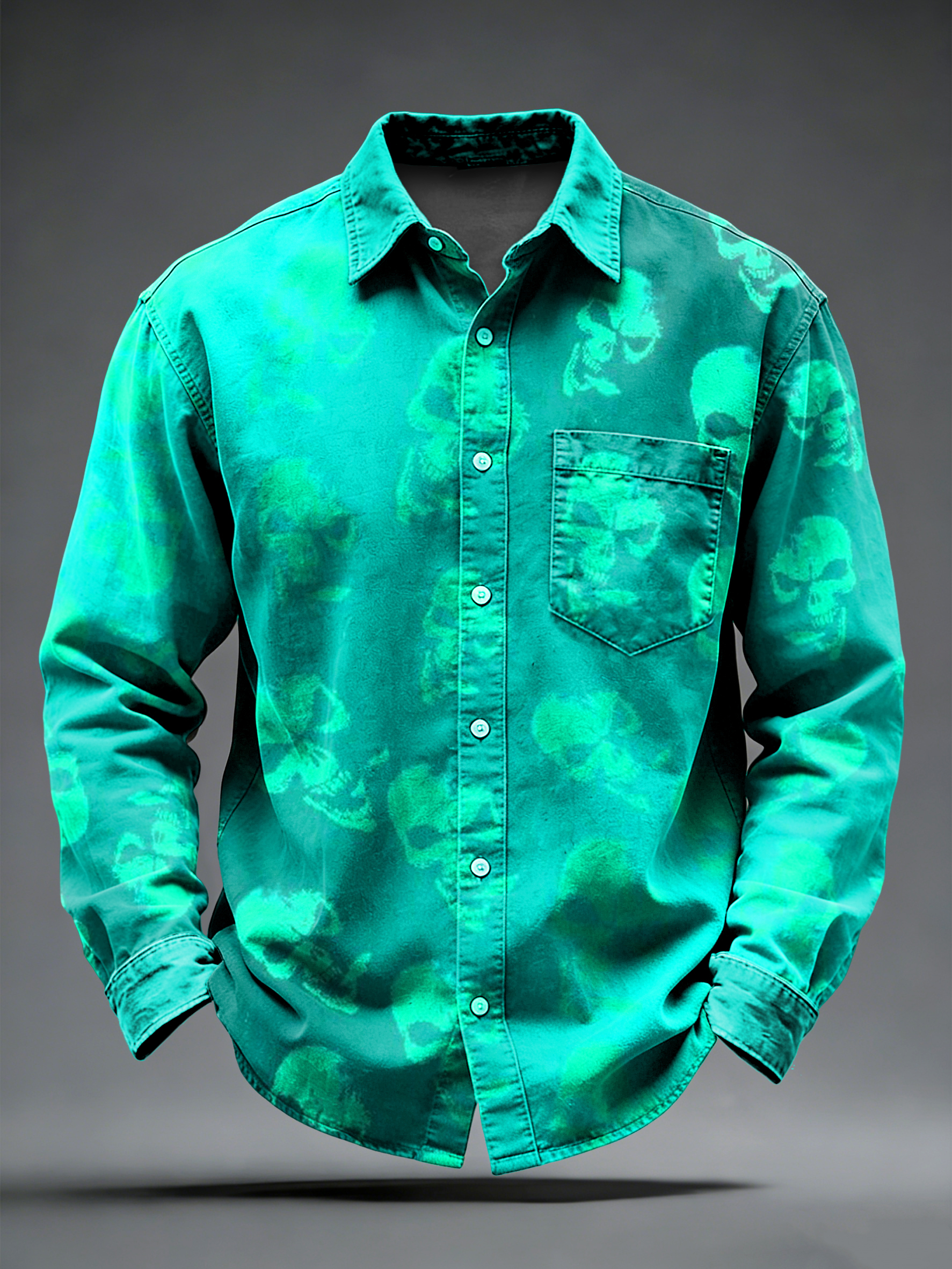 Men's Retro Punk Psychedelic Skull Printed Long Sleeved Pocket Shirt