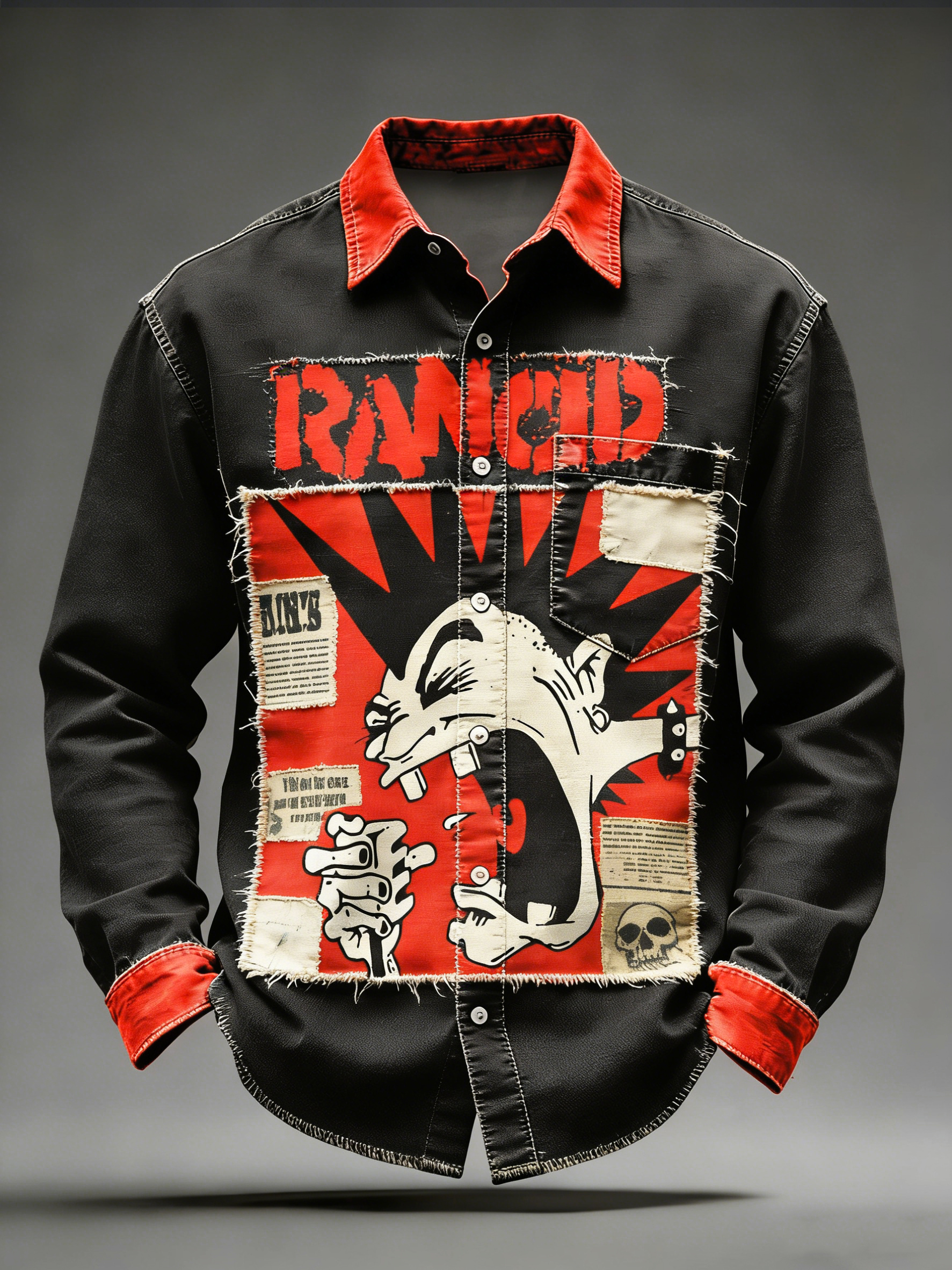Men's Retro Punk Skull Printed Long Sleeved Pocket Shirt