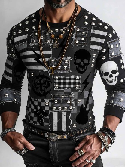 Men's Retro Punk Style Skull Cross Patchwork Printed Comfortable Sweatshirt