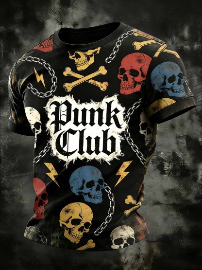 Men's Retro Punk Style Skull Patchwork Printed Comfortable T-shirt