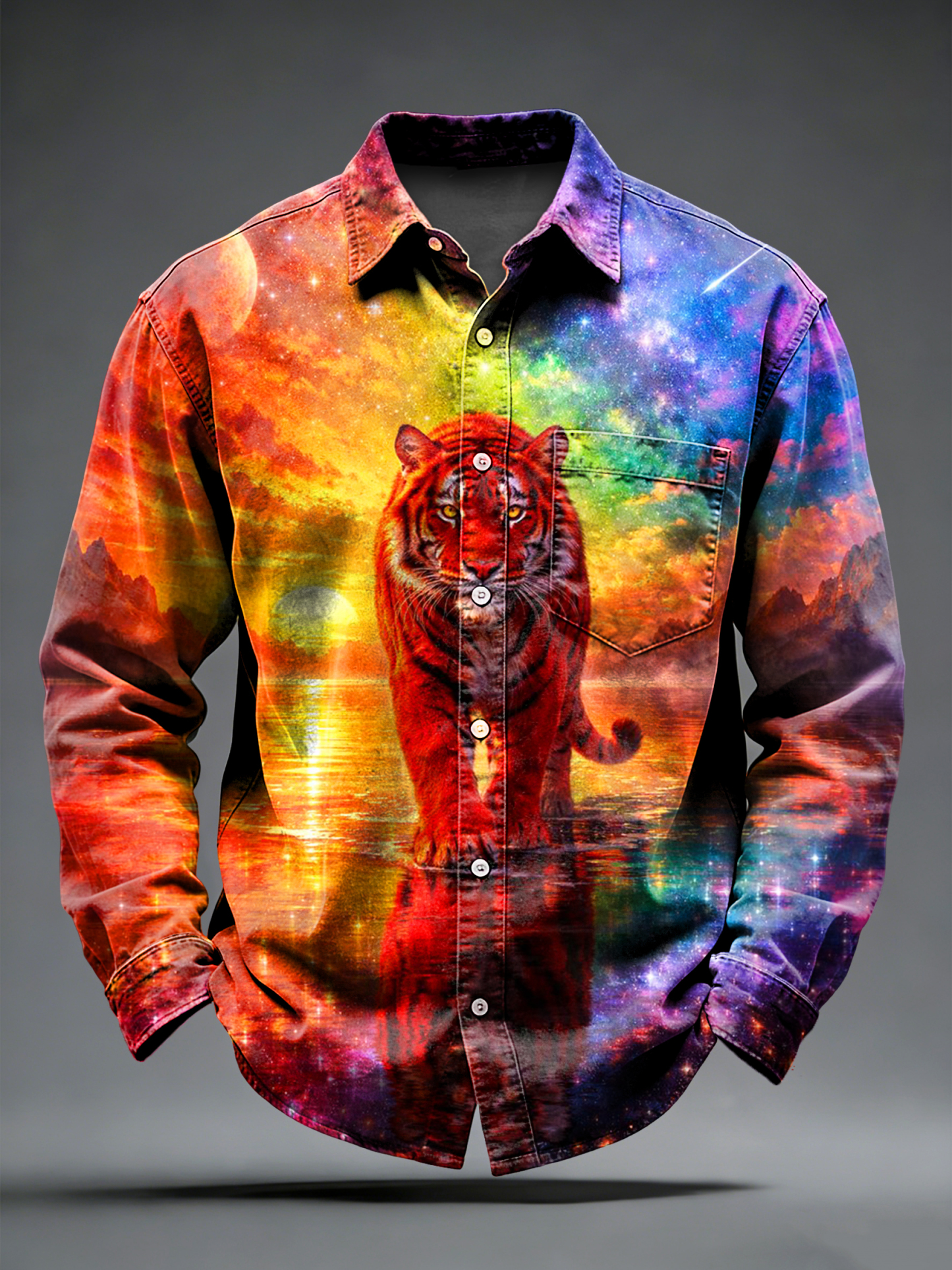Men's Retro Punk Tiger Printed Long Sleeved Pocket Shirt