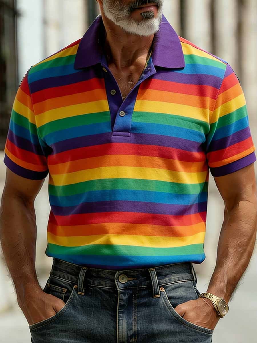Men's Retro Rainbow Pattern Printed Casual Polo Shirt
