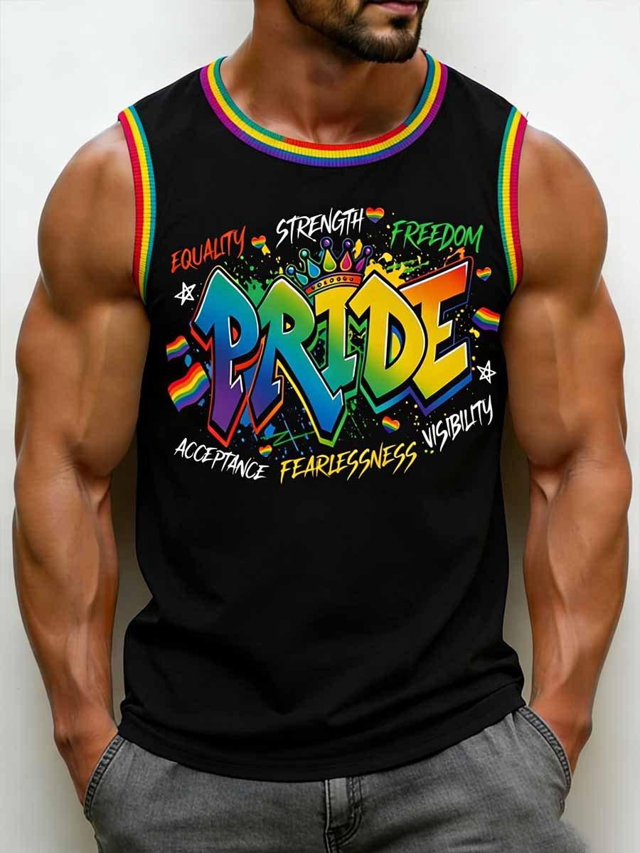 Men's Retro Rainbow Pattern Printed Casual Tank Top