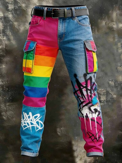 Men's Retro Rainbow Pattern Printed Casual Work Pants