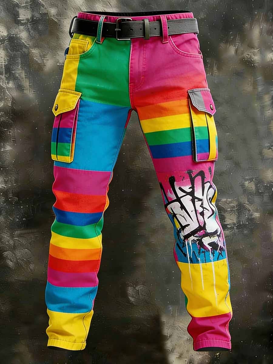 Men's Retro Rainbow Pattern Printed Casual Work Pants