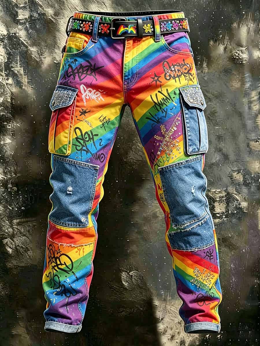 Men's Retro Rainbow Pattern Printed Casual Work Pants