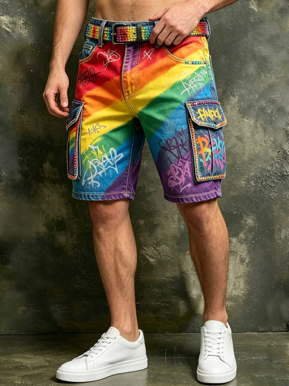 Men's Retro Rainbow Pattern Printed Casual Work Pants