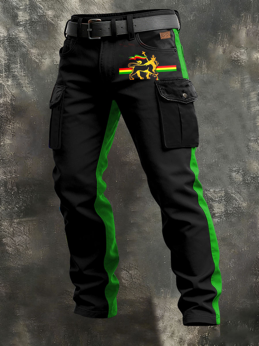 Men's Retro Reggae Art Print Casual Workwear Trousers