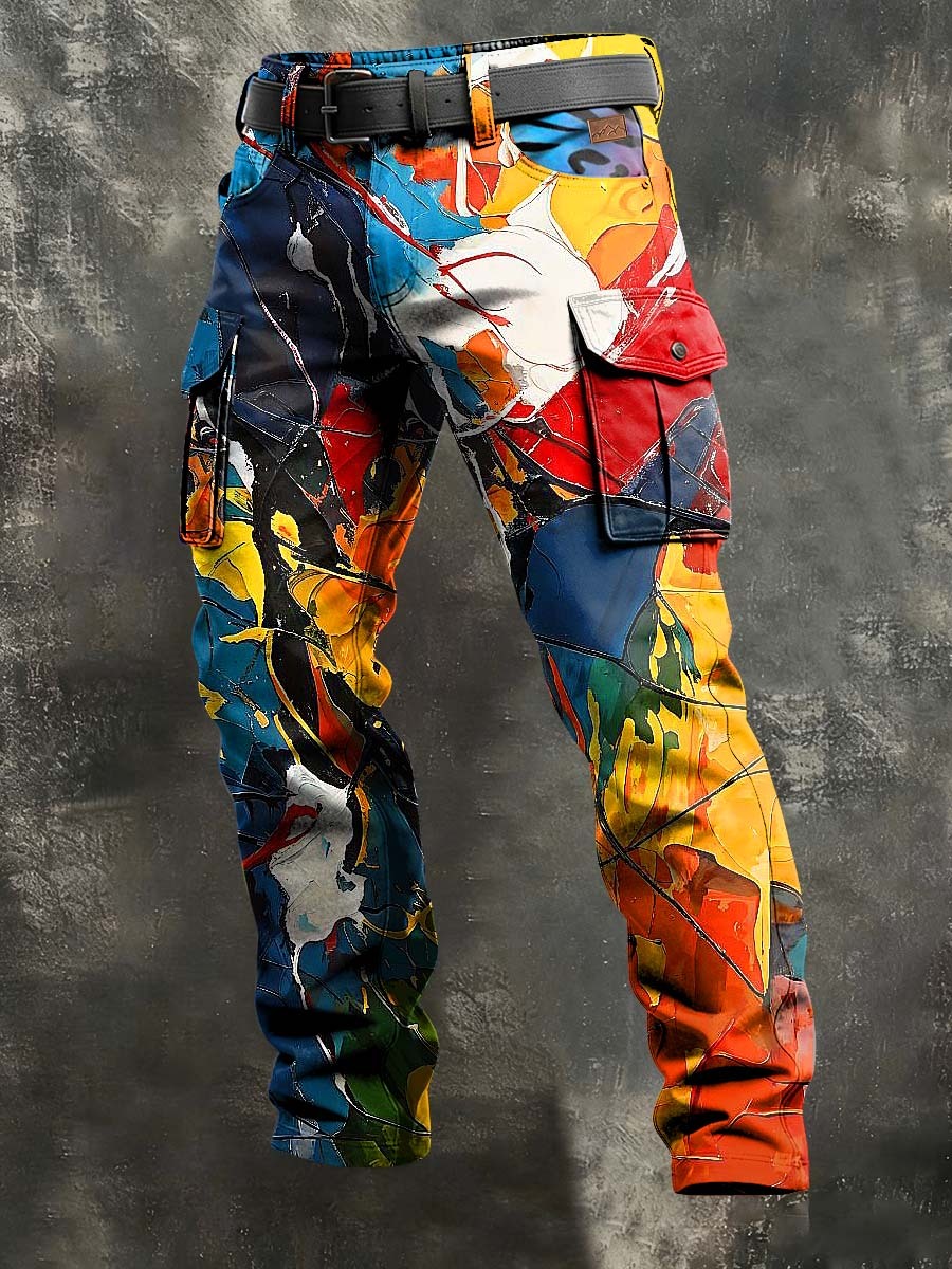 Men's Retro Vacation Business Abstract Art Print Casual Workwear Trousers