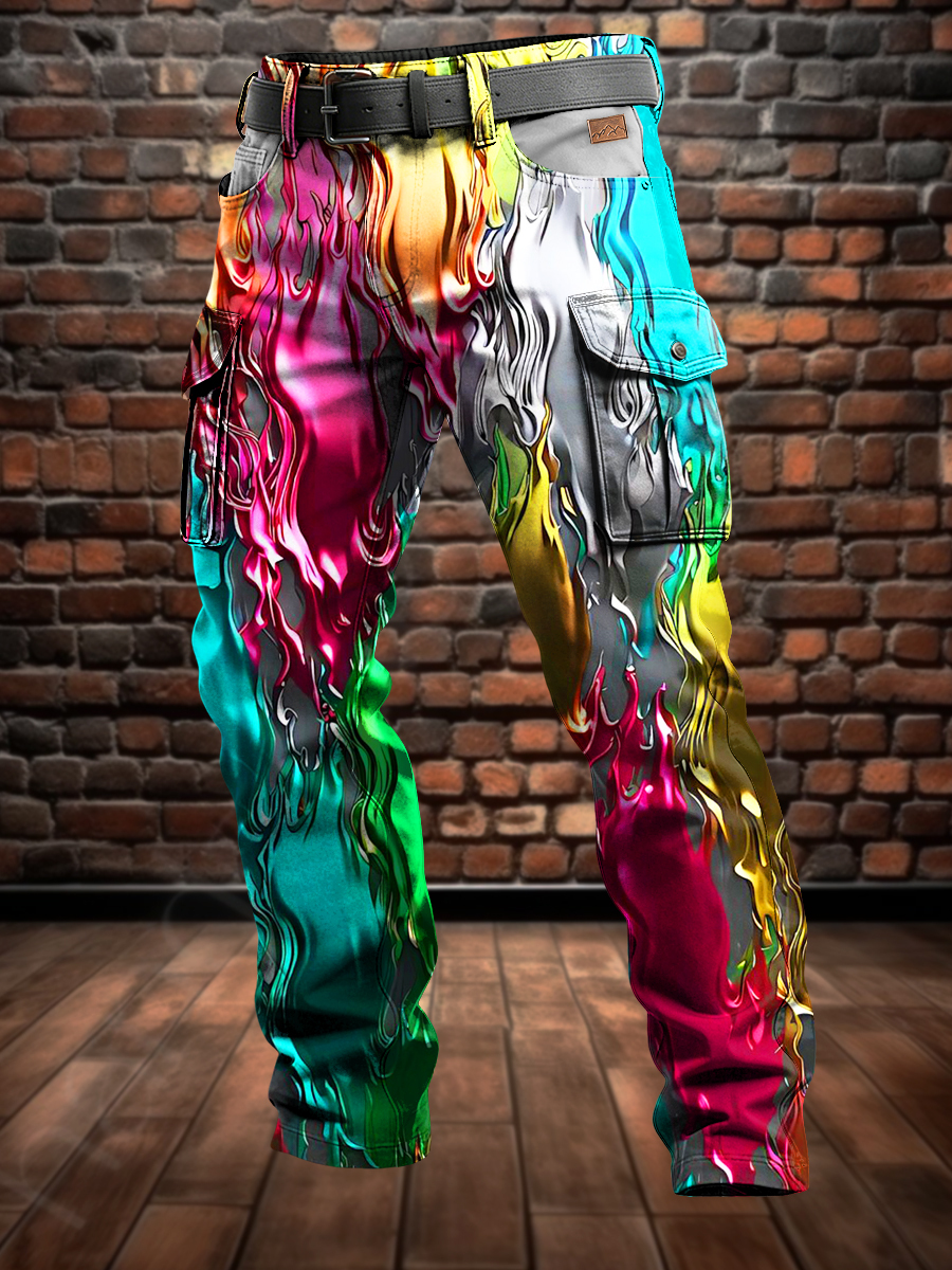 Men's Retro Vacation Business Art Print Casual Workwear Trousers
