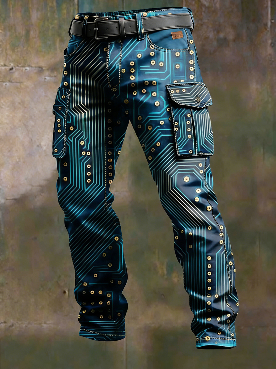 Men's Retro Vacation Business Circuit Board Art Print Casual Workwear Trousers