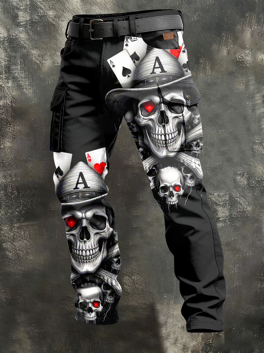 Men's Retro Vacation Business Gothic Skull Art Print Casual Workwear Trousers
