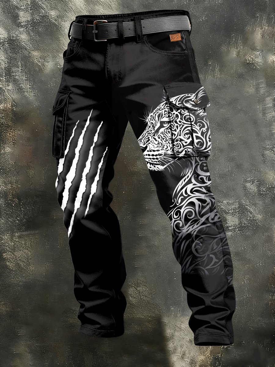 Men's Retro Vacation Business Leopard Art Print Casual Workwear Trousers