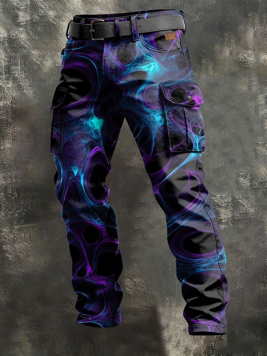 Men's Retro Vacation Business Psychedelic Art Print Casual Workwear Trousers