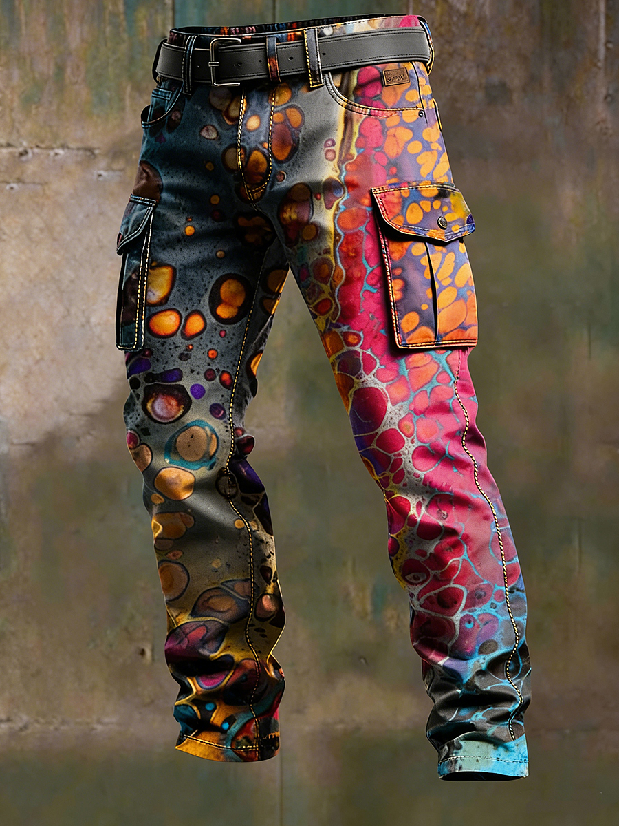 Men's Retro Vacation Business Psychedelic Art Print Casual Workwear Trousers