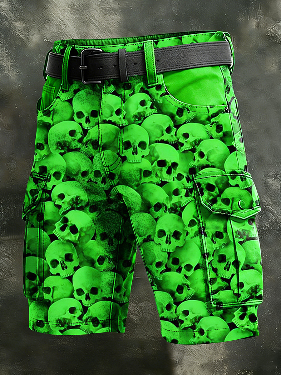 Men's Retro Vacation Business Psychedelic Skull Art Print Casual Shorts