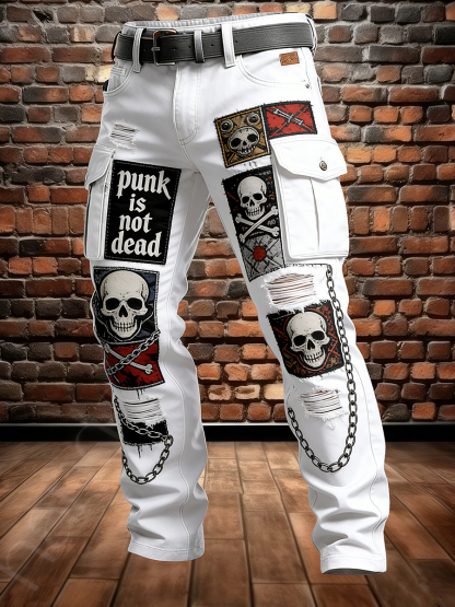 Men's Retro Vacation Business Punk Skull Art Print Casual Workwear Trousers