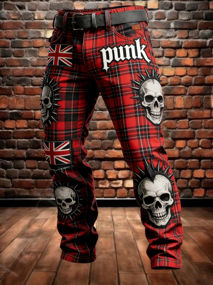 Men's Retro Vacation Business Punk Skull Art Print Casual Workwear Trousers