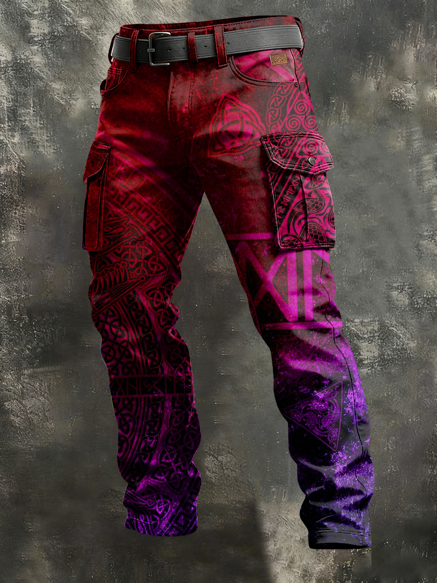 Men's Retro Vacation Business Viking Art Print Casual Workwear Trousers