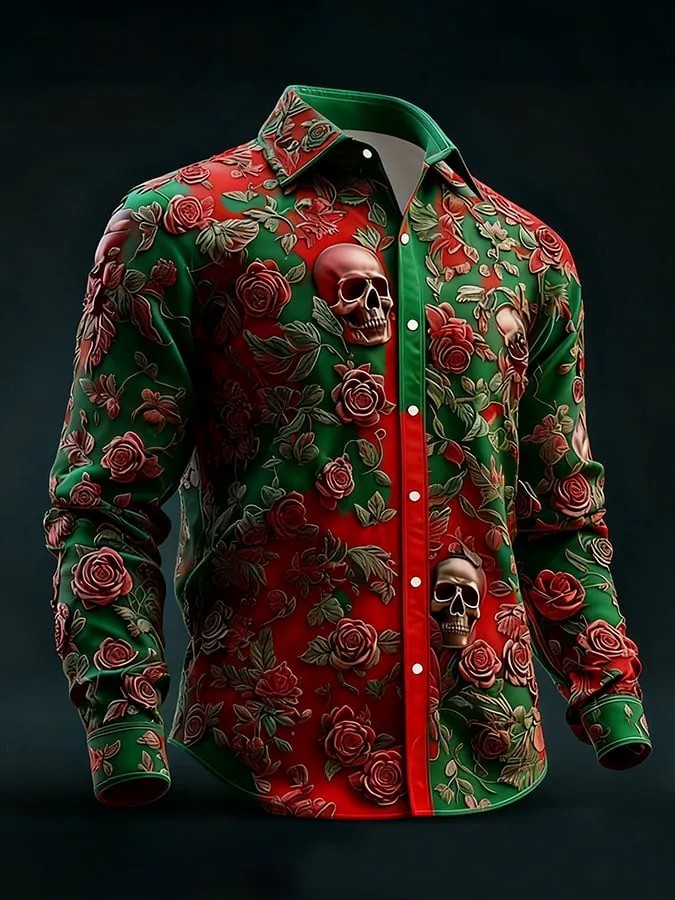Men's Retro Valentines Day Skull Long-Sleeved Shirt