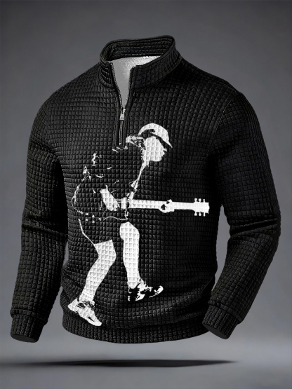 Men's Rock Music Inspired Waffle Long Sleeve Sweatshirt