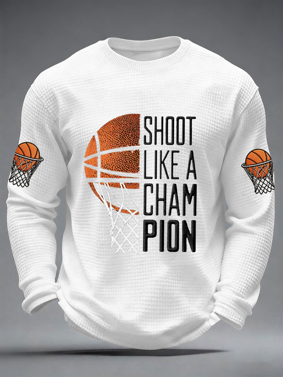 Men's Shoot Like A Champion Print Basketball Lovers Gameday Casual Waffle Long Sleeve T-Shirt