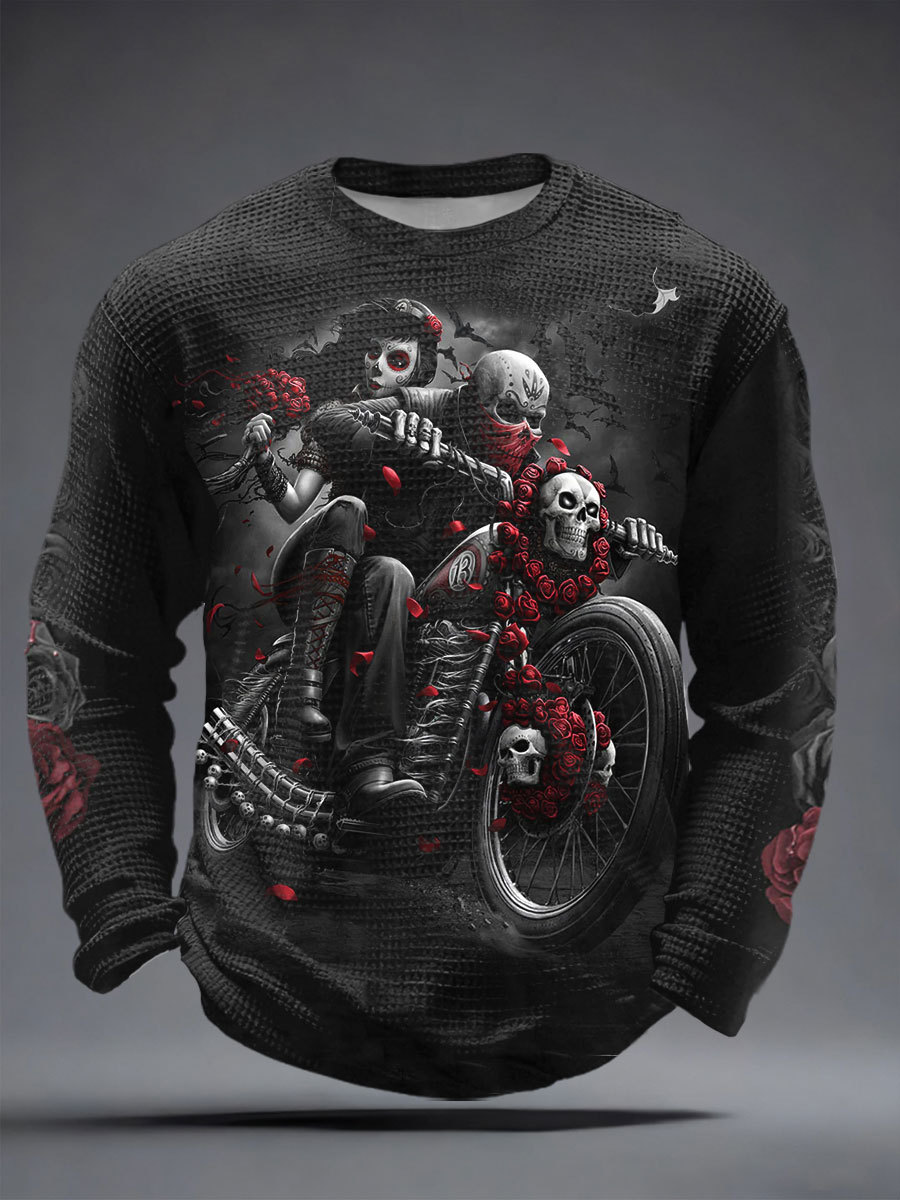 Men's Skull Motorcycle Print Waffle T-Shirts