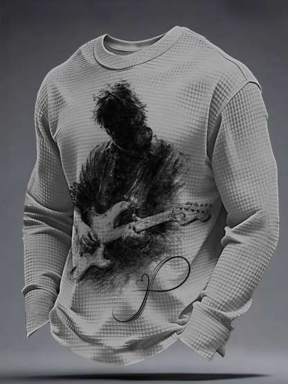 Men's The Road Man Music Lover Printed Waffle Sweatshirt