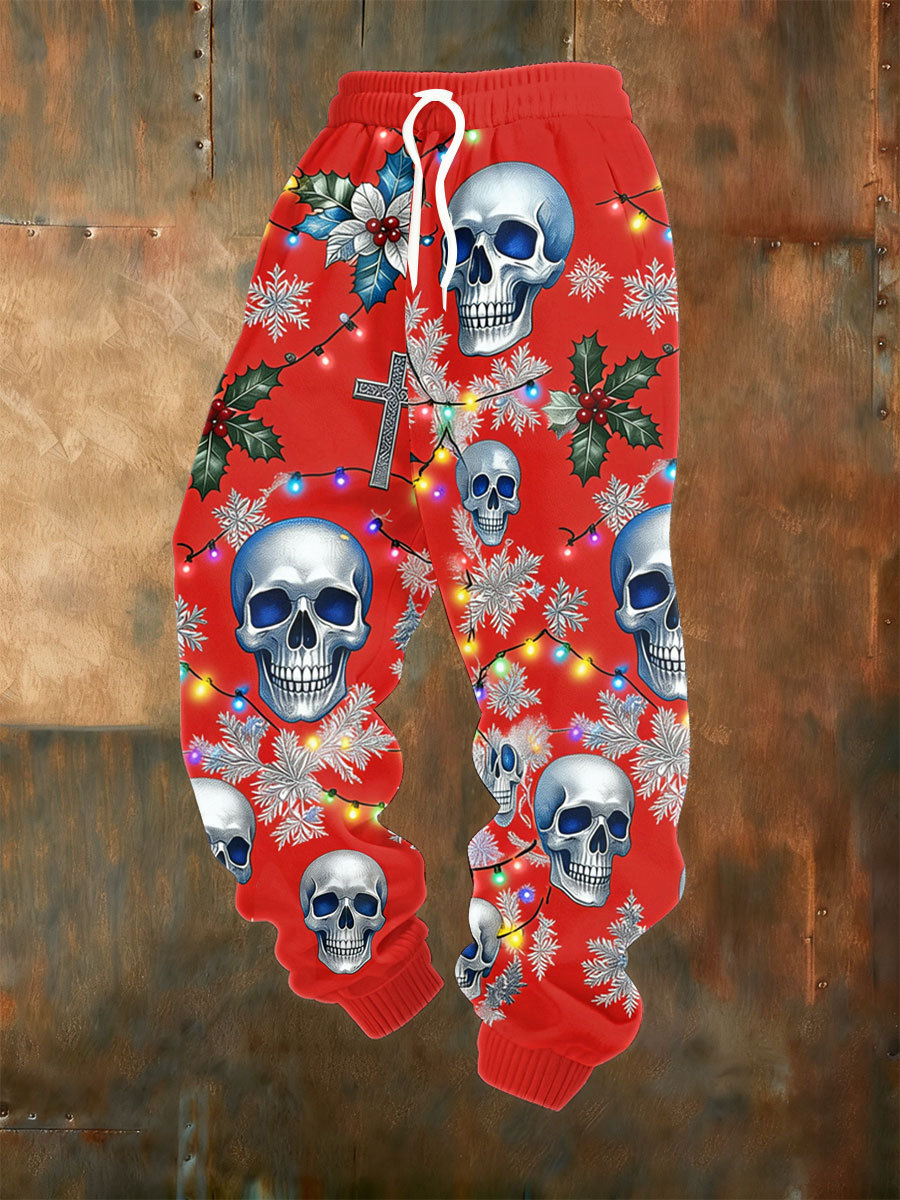Men's Vintage Christmas Skull Pants