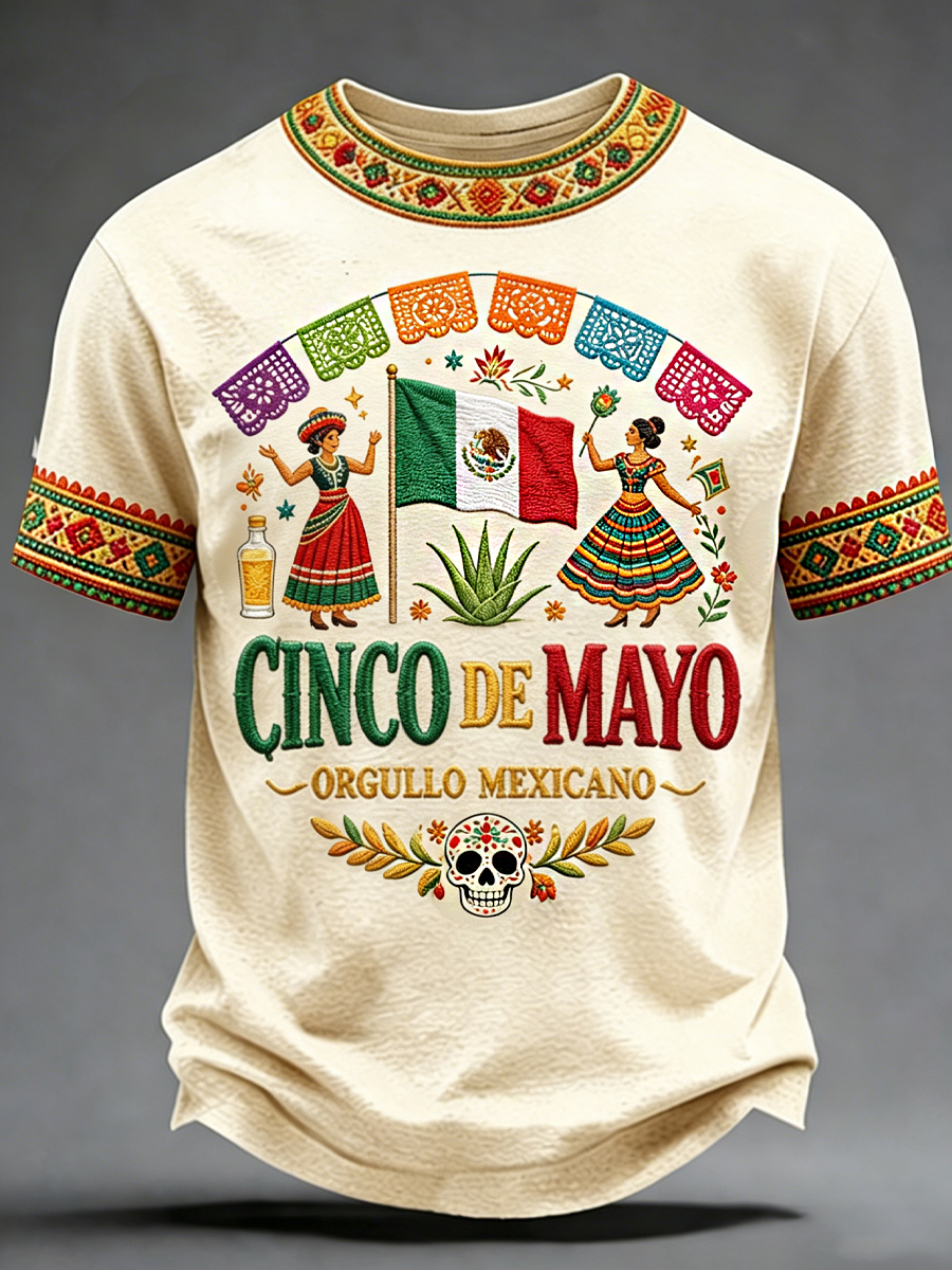Retro Mexican Cinco de Mayo Art Print Casual T-Shirt