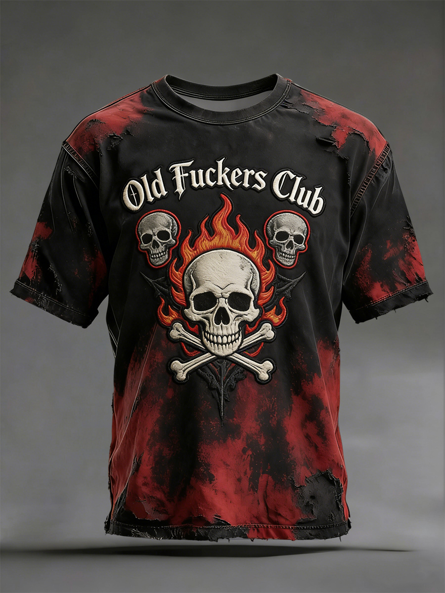 Vintage-Washed “Old Fuckers Club” Casual T-Shirt