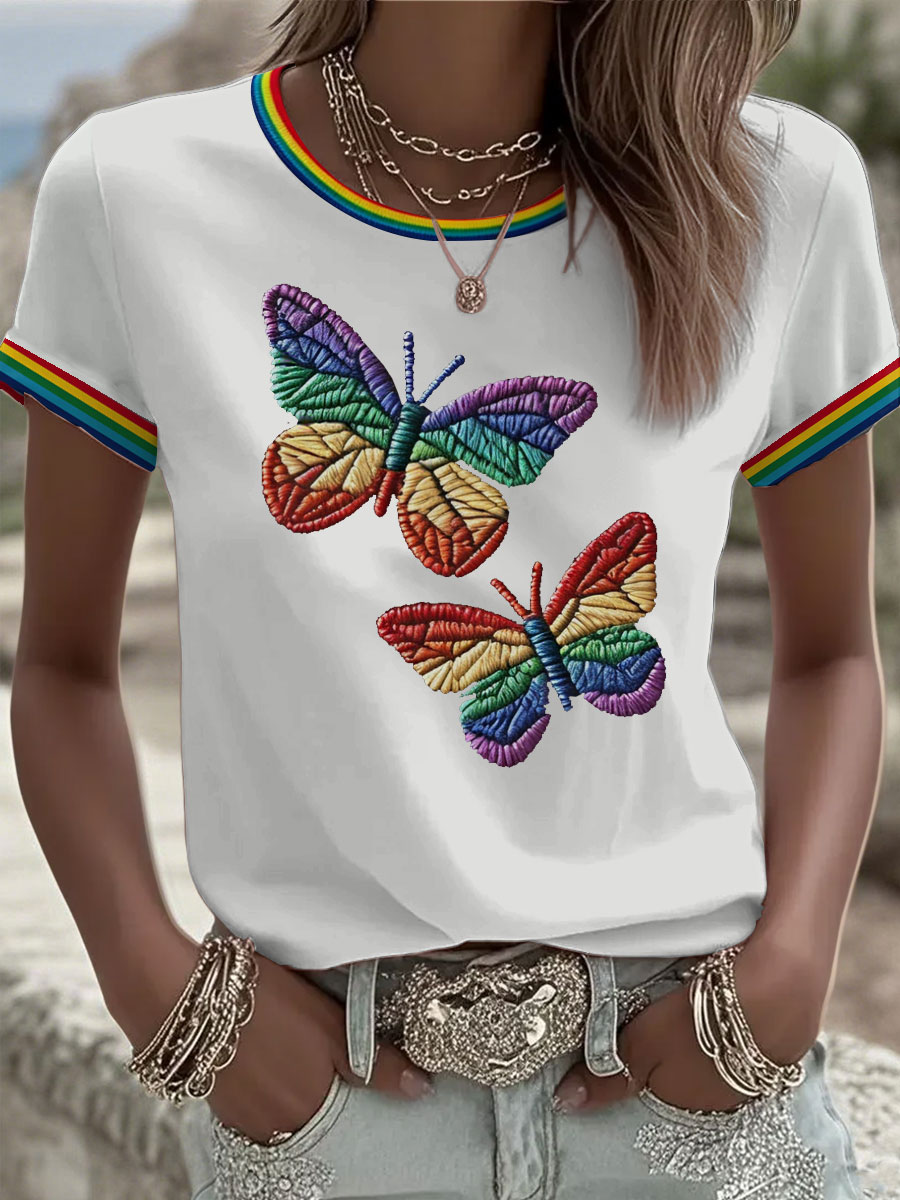 Women's Butterfly Rainbow Pride Month short-sleeved T-shirt