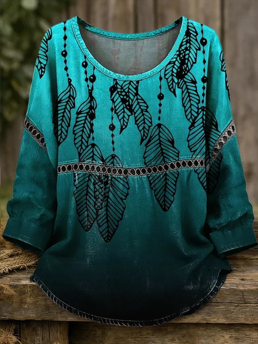Women's Retro Western Art Print Casual T-shirt