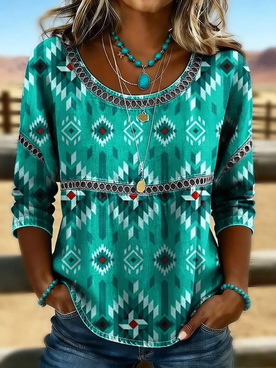 Women's Retro Western Aztec Print Casual Top
