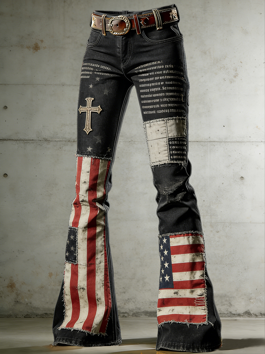 Women's American Flag Art Print Flared Trousers