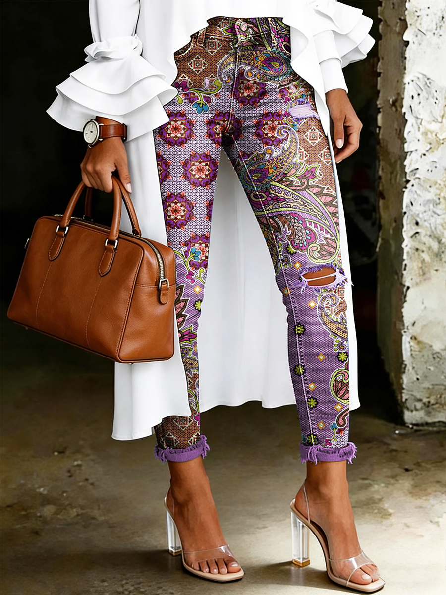 Women's Artistic Floral Print Jeans