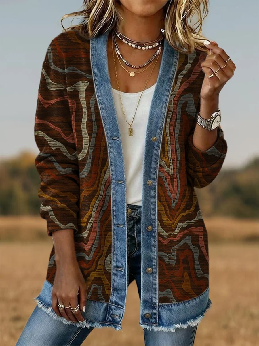 Women's Aztec Pattern Casual Button Cardigan Jacket