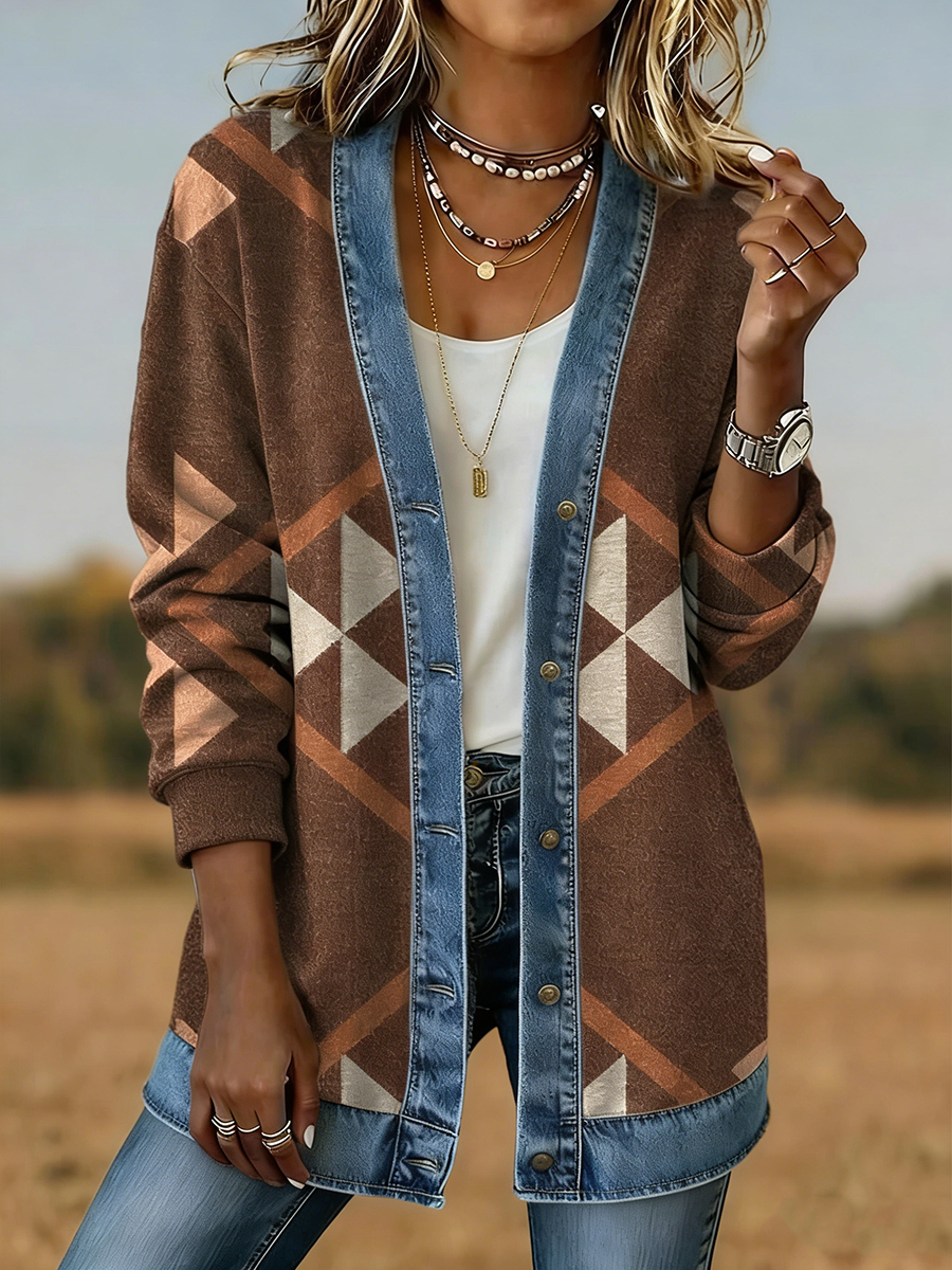 Women's Aztec Pattern Casual Button Cardigan Jacket