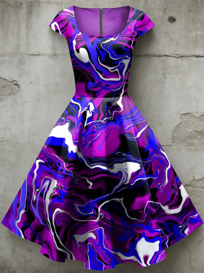 Women's Casual U-Shaped Collar Short Sleeve Psychedelic Print Short Sleeve Dress