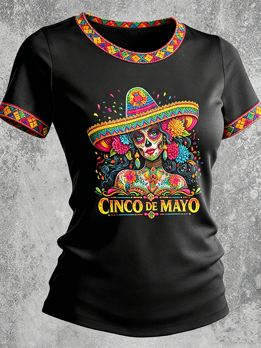 Women's Cinco de Mayo Printed Vintage Fashion Loose Short Sleeve T-Shirt
