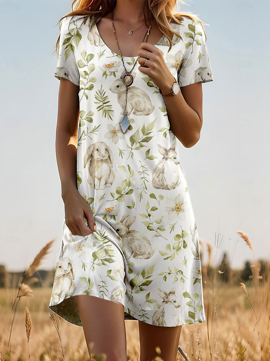 Women's Easter Bunny Printed Dress