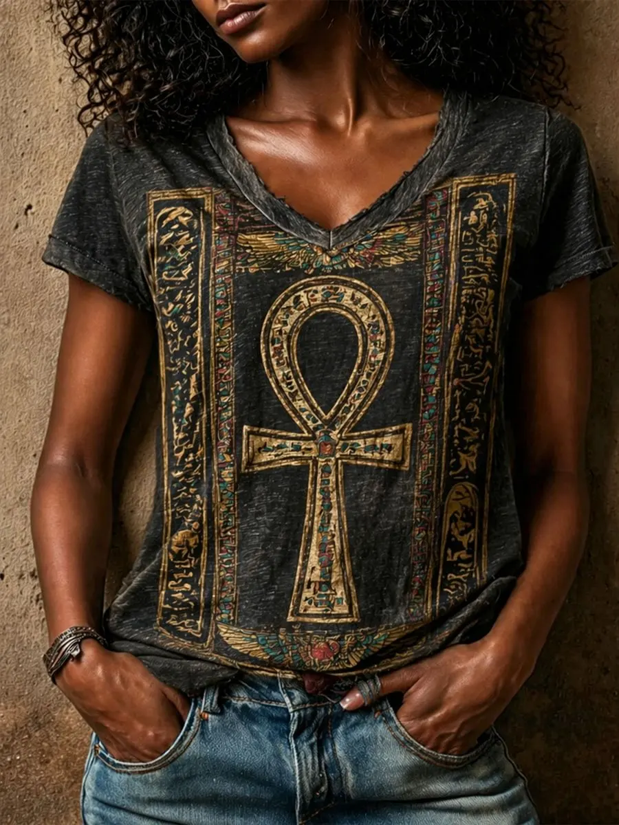 Women's Egyptian Ankh Symbol linen short-sleeved T-shirt